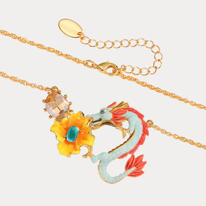 This necklace showcases an intricately designed dragon intertwined with delicate wintersweet blooms, making it a meaningful and enchanting accessory. Perfect for expressing your zodiac identity, this piece embodies the strength and mystique of the dragon alongside the serene beauty of wintersweet flowers, creating a striking and unique statement for any outfit.