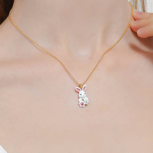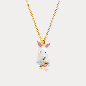 This charming necklace features a cute white bunny holding a bouquet of vibrant flowers, meticulously crafted and hand-painted to perfection. Perfect for everyday wear or special occasions, this necklace is a wonderful reminder of the beauty and joy that nature brings.