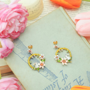 Delightfully whimsical, the Fluffy Bunny Garland Earrings feature playful bunny motifs nestled amidst vibrant floral accents. These dangling earrings are a celebration of nature and charm, perfect for adding a touch of fantasy to your ensemble.