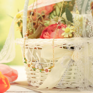 Radiating garden-inspired beauty, the Fluffy Bunny Necklace showcases two bunnies sitting on a branch surrounded by pastel flowers. Its intricate design and vivid colors make it a standout accessory for nature enthusiasts.