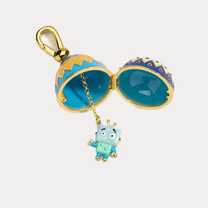 Meet the "Little Robot Locket Pendant," a whimsical locket that opens to reveal a miniature robot friend inside. Crafted with vibrant colors and intricate details, this playful accessory features a golden clasp and a dangling blue robot that brings a dash of fun and imagination to any outfit.