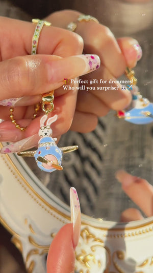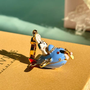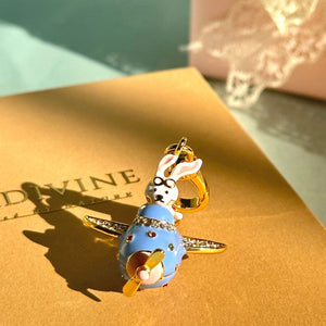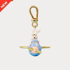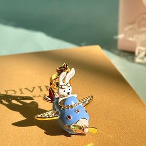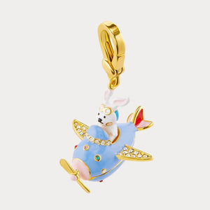 Featuring an adorable bunny donning aviator goggles, seated in a charming blue airplane adorned with sparkling crystals, this pendant is a playful and whimsical accessory. Perfect for aviation enthusiasts or those who love unique and fun designs, it adds a touch of adventure to your look.