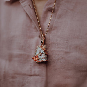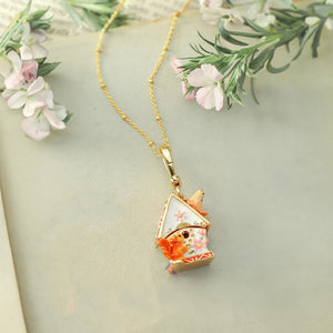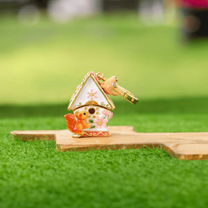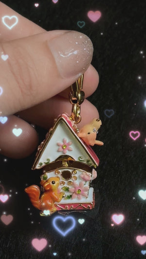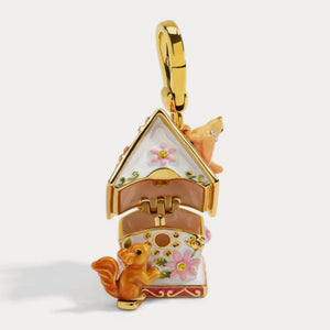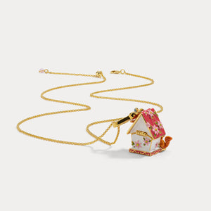 Drawing inspiration from the serene existence in nature, this Pendant captures the essence of a charming squirrel and its cozy cabin. Upon closer examination, you'll notice the pendant depicts an intricately detailed cottage adorned with tiny pink flowers, where the squirrel and a small bird share a moment of companionship on the roof. This idyllic scene embodies the harmony and beauty of life, offering a piece that not only helps you leave behind the worries of daily life but also encourages a positive outlook. Ideal for personal adornment or as a thoughtful gift for friends.