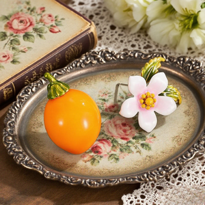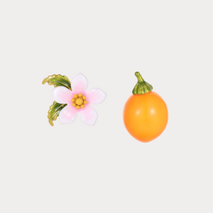 Add a touch of sunshine to your look with the Cherry Tomato Stud Earrings. Featuring delicate pink blossoms paired with vibrant orange fruit motifs, these studs capture the charm of a flourishing orchard in full bloom. Their playful yet refined design makes them perfect for brightening up everyday outfits or adding a fresh, cheerful accent to special occasions.