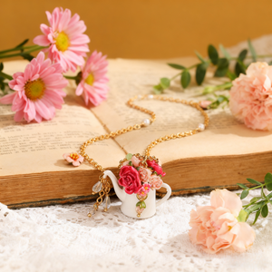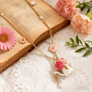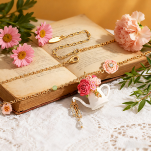 Capture the fleeting beauty of spring with the Sakura Necklace. This delicate piece features a hand-painted sakura blossom, accented by a lustrous pearl centre that radiates timeless elegance. Suspended from a gold-tone chain with subtle beaded detailing, it blends romance and refinement in perfect harmony. A graceful accessory that celebrates femininity, ideal for both everyday wear and special occasions.