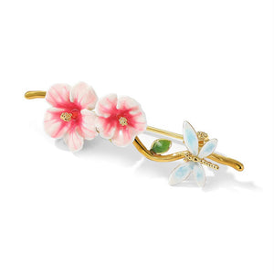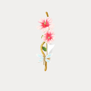 This exquisite brooch features beautifully enameled white-pink blooms, vibrant green leaves, and a delicate light blue butterfly. The intricate detailing and vivid colors bring the design to life, making it a standout piece. Perfect for elevating your everyday wear or as a thoughtful gift, this brooch captures the essence of floral beauty and timeless sophistication.