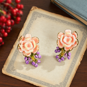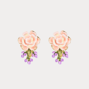 The Lavender Earrings capture the charm of a blooming garden with soft pink roses and delicate lavender buds. Hand-painted with fine detail and accented with a golden finish, these earrings bring a romantic and feminine touch to your style. Perfect for adding floral elegance to both everyday looks and special occasions.
