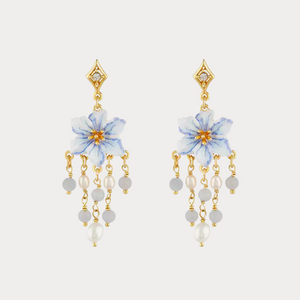 Add a graceful flourish to your look with the Tulip Tassel Earrings, where artistry meets elegance. Each earring features a hand-painted blue-and-white tulip bloom set in gold-tone, adorned with sparkling crystals. Delicate tassels of lustrous pearls and soft matte beads sway gently with every movement, capturing light and charm from every angle. Perfect for both daytime sophistication and evening glamour, these earrings bring a timeless floral touch to any ensemble.