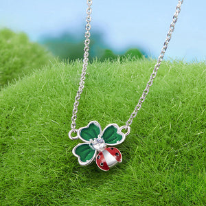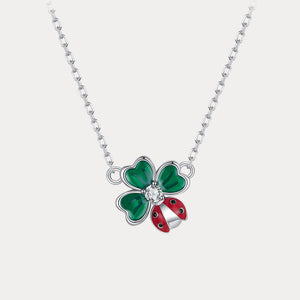 Embrace luck and elegance with our Four Leaf Clover Ladybug Necklace. Featuring a finely crafted ladybug perched delicately on a lucky four-leaf clover, this exquisite necklace symbolises prosperity and good fortune. Its detailed design adds a graceful touch, making it the perfect accessory to complement any outfit.
