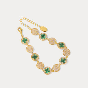 Enhance your elegance with this stunning Four-leaf Clover Coin Bracelet, meticulously crafted from luxurious 18k gold. The timeless design features intricate details that instantly elevate your style, offering a sophisticated and refined look.
