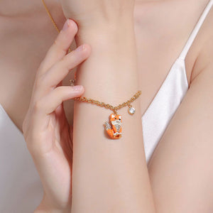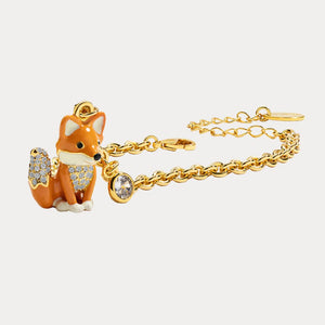 Adorn your wrist with the delightful charm of our Fox Bracelet. This elegant piece features a finely crafted fox charm with sparkling accents, set on a delicate 18k gold-plated chain. Perfect for adding a touch of whimsy and sophistication to any outfit, this bracelet is ideal for both casual and formal occasions. Celebrate your love for nature and style with this charming accessory.