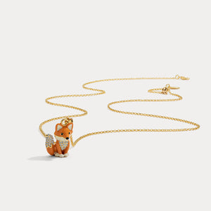 This necklace showcases a fox adorned with cubic zirconia on its chest and tail, presenting a shimmering, exquisite appearance. Revered as a symbol of wisdom and good fortune, this necklace makes a perfect gift, conveying heartfelt wishes of prosperity and intelligence to yourself or a loved one.