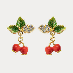 Featuring vibrant cranberry-inspired drops and delicately crafted green enamel leaves adorned with sparkling crystals, these earrings are a perfect blend of nature and elegance. Ideal for adding a pop of color and a touch of sophistication to your everyday or festive looks.