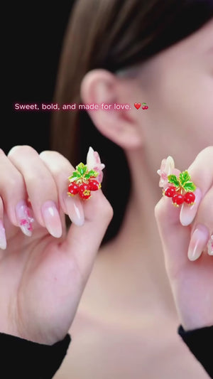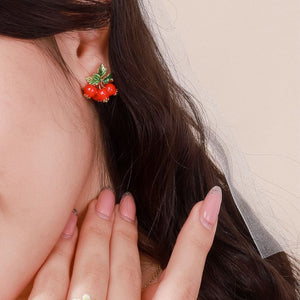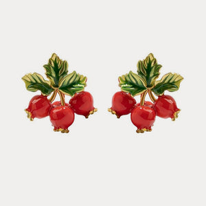 These exquisite cranberry earrings from the Cranberry collection feature vivid ruby-red cranberries adorned with rich green leaves. The hand-enamelled cranberries and leaves imbue these earrings with a sense of sweet fragrance and elegance. This makes them a beautiful and luxurious gift, perfect for enhancing any woman's daily outfits with a touch of natural beauty and sophistication.
