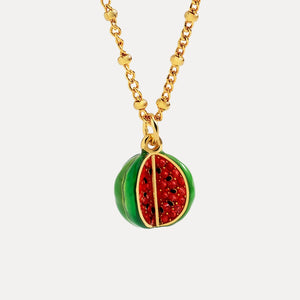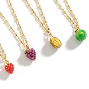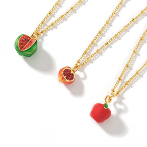 This elegant pendant necklace for women stands out with its array of fruit pendants crafted from enamel, including options like banana, strawberry, cherry, watermelon, and more. The charming, fresh fruit designs, which almost emit a delightful fragrance, are sure to uplift your spirits and add a sweet, fruity essence to your appearance.
