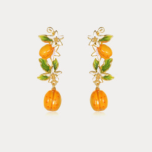 Home Fruit Jewelry Golden Apricot Blossom Dangling Earrings
