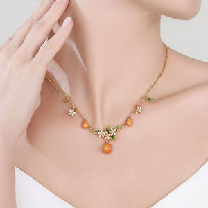 Home Fruit Jewelry Golden Apricot Blossom Multi- Charm Necklace