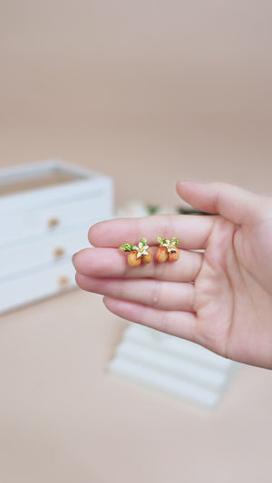 Experience the delicate elegance of nature with our Golden Apricot Flower Stud Earrings. These beautifully crafted earrings capture the essence of refined simplicity and natural beauty. Designed to add a touch of luxury and grace to your everyday look, each stud features a detailed blossom in pristine white enamel, framed by lush green leaves.