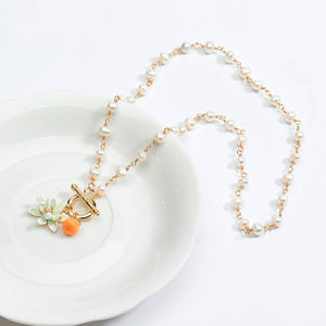 Home Fruit Jewelry Orange Statement Necklace With Pearls