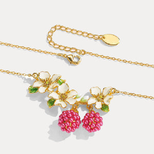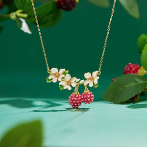 This charming nature-inspired necklace showcases a delicate pendant featuring raspberries and flowers on a dainty chain. Add a touch of sweetness and elegance to any outfit with this unique piece. Ideal for nature enthusiasts and those seeking a distinctive, beautiful accessory.