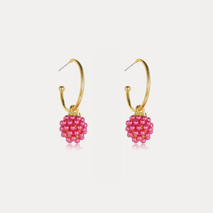 Add a playful twist to your style with the Raspberry Hoop Earrings. Featuring elegant gold-tone hoops and vibrant raspberry charm, these earrings bring a fresh and charming vibe to any outfit. Lightweight and versatile, they're perfect for casual wear or festive occasions.