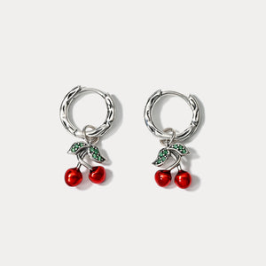 The Silver Cherry Hoop Earrings combine whimsical charm with timeless elegance. Made from high-quality silver, these hoops are adorned with vivid red cherry charms, accented by lush green leaves and subtle sparkles that add a playful yet polished touch to any ensemble.