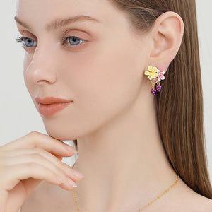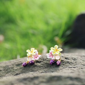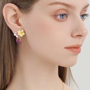 EThese unique earrings are crafted from gold-plated brass with intricate enamel detailing, perfect for adding a hint of luxury and charm to your everyday style. Embracing a cottagecore vibe, these earrings are versatile enough for daily wear or as a thoughtful gift for someone special. Enhance your collection with the timeless beauty of Sweet Grape Flower Earrings.
