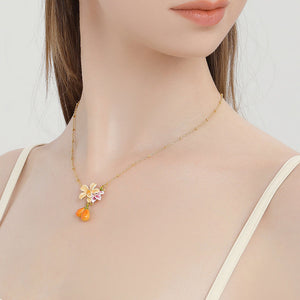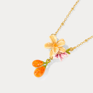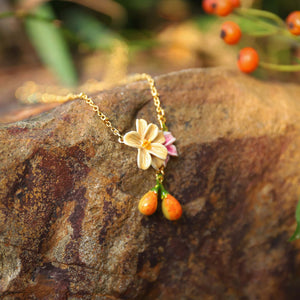 Crafted from brass with intricate enamel detailing, this necklace features a captivating design inspired by pear blossoms. Ideal for everyday wear, it effortlessly adds a touch of nature's elegance to any outfit. Whether as a thoughtful gift or a personal indulgence, this nature-inspired necklace is a stylish choice that celebrates the beauty of floral charm. Embrace the grace of nature with this delightful piece.