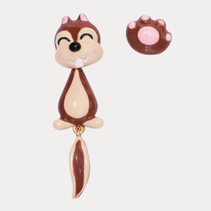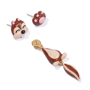 Featuring a sweet, smiling squirrel on one side and a delicate paw print on the other, these earrings bring a whimsical touch to any outfit. The squirrel design includes intricate details like rosy cheeks and a dangling tail, creating a sense of movement and fun. Perfect for nature lovers and those who appreciate unique, asymmetrical jewelry.