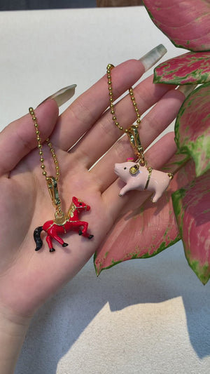 Featuring a charming pink piggy adorned with a red bowknot on its forehead, this necklace symbolizes the sweet fragrance of life. It aims to inspire enthusiasm and reminds wearers to live in the moment and enjoy the fruits of their labor. This delightful necklace makes a perfect gift for a loved one, wishing them joy and happiness. Embrace the playful spirit and let this cute pendant brighten your day.