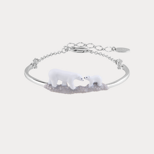 Delicate and meaningful, the Polar Bear Bracelet features a tender scene of a mother and cub crafted in hand-painted enamel, resting on a shimmering icy base. Made in sterling silver with an adjustable chain, it symbolises love, protection, and the fragile beauty of nature. A heartfelt piece that blends elegance with storytelling charm.