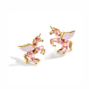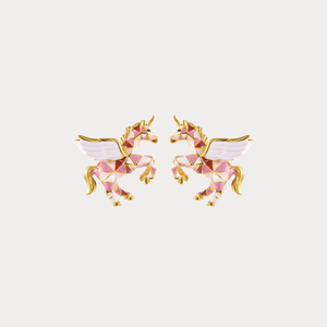 Add a touch of everyday magic with these Unicorn Stud Earrings. Featuring a pair of winged unicorns in soft pink enamel with gleaming gold-tone details, they feel playful yet polished. The geometric pattern catches the light beautifully, making them the perfect little statement for parties, date nights, or whenever you want your look to feel a bit more whimsical.