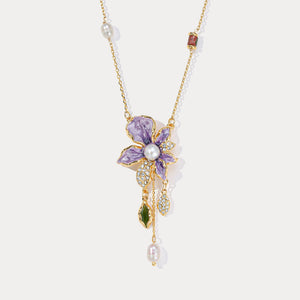 Home Iris Flower Jewelry Purple Iris Flower Pearl Necklace