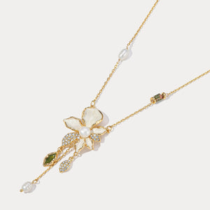 Home Iris Flower Jewelry White Iris Flower Pearl Necklace