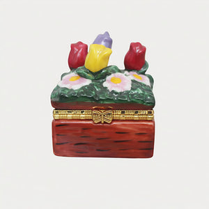 Bring the freshness of spring indoors with this floral-themed trinket box. Designed like a mini garden, it features vibrant tulips and daisies on a textured wooden-style base. A perfect addition to your collection or as a gift for nature lovers.