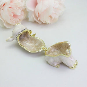 Charming and full of warmth, the Piggy Trinket Box features a sweet little pig adorned with delicate crystal accents and a soft enamel finish. Designed to bring a smile at first glance, this playful piece opens to hold rings, earrings, or tiny keepsakes. Symbolising luck, abundance, and joy, it makes a delightful decorative accent for a dresser or a thoughtful gift for animal lovers and collectors alike. Cute yet meaningful, it’s a small treasure box that brightens everyday moments.
