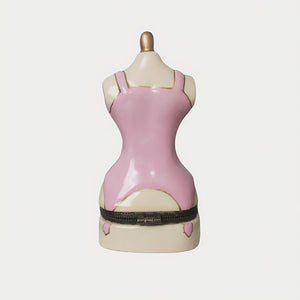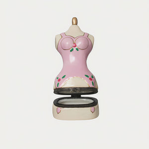 Crafted in the shape of a vintage mannequin, this trinket box features a charming pink dress adorned with floral accents. The box opens to reveal a hidden compartment, ideal for storing small jewelry or keepsakes. Its intricate detailing and elegant design make it a thoughtful gift for fashion enthusiasts or a stylish addition to your collection.
