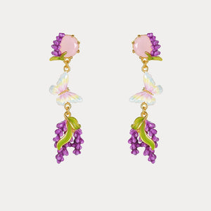 Delicate lavender stamens set within the pink stone create a captivating interplay with the light-colored butterflies. These elegant earrings add a touch of charm to any outfit, making it unforgettable. Imagine walking through a fragrant flower field, with the soothing lavender tones evoking a sense of calmness. Perfect for any fashion lover, these enchanting earrings are a must-have for adding an elegant touch to your collection.