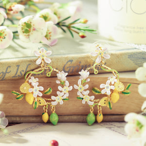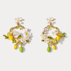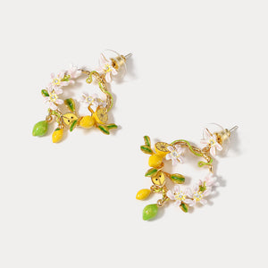 Add a splash of sunshine to your look with our Lemon Garland Earrings. Bursting with vibrant lemon motifs and crafted with intricate detail, these playful earrings bring the fresh charm of a garden and the lighthearted spirit of a summer escape. Perfect for brightening up any outfit with a joyful, nature-inspired touch.