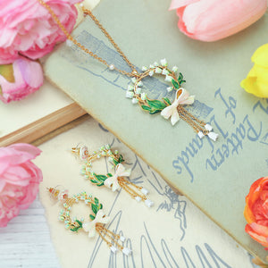 Celebrate love’s purest moments with our Lily of the Valley Bow Necklace. Delicately adorned with blooming florals and finished with a graceful bow, this elegant piece captures the essence of bridal beauty. Perfect for weddings, it symbolizes timeless love, grace, and the beginning of a beautiful journey together.
