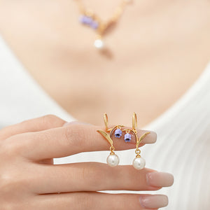 Delicate and poetic, the Lily Of The Valley Earrings capture the quiet beauty of spring in bloom. Graceful gold-tone stems hold tiny lavender bell flowers, paired with a softly glowing pearl drop that sways with every movement. Light, elegant, and effortlessly feminine, they’re perfect for adding a touch of romance to everyday looks or completing a refined, nature-inspired ensemble.