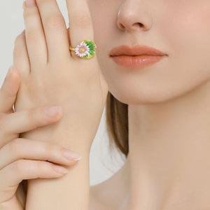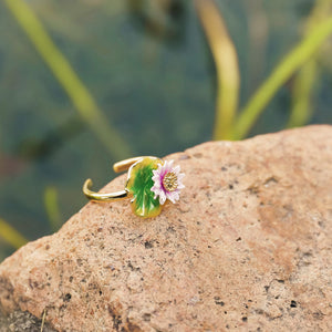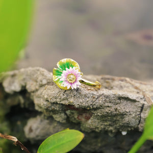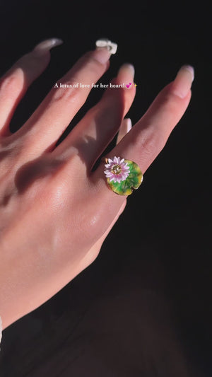 This exquisite ring, meticulously handcrafted from brass and vibrant enamel, is designed to make a bold statement. Its modern design and elegant silhouette make it perfect for both everyday wear and special occasions. The Lotus Ring's sophisticated charm also makes it an ideal gift for someone special. Add a touch of luxury and unique artistry to your jewelry collection with this stunning piece.