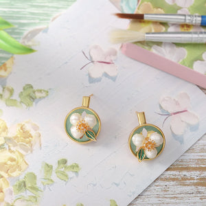 For our enamel jewelry, we use 18k gold-plated brass. All jewelry featuring pearls is crafted with freshwater pearls, and any gemstones used are either cubic zirconia or Czech gemstones. For a small selection of non-enamel jewelry, please refer to the specifications on the respective product pages for material details.