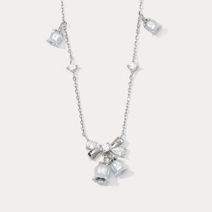 Add a graceful flourish to your look with our Lily Of The Valley Bow Silver Necklace. Crafted from delicate silver and detailed with blooming lily of the valley accents, these earrings exude timeless charm. Perfect for bringing a soft, elegant touch to any ensemble.