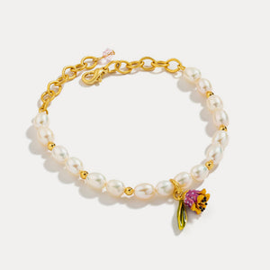 For our enamel jewelry, we use 18k gold-plated brass. All jewelry featuring pearls is crafted with freshwater pearls, and any gemstones used are either cubic zirconia or Czech gemstones. For a small selection of non-enamel jewelry, please refer to the specifications on the respective product pages for material details.