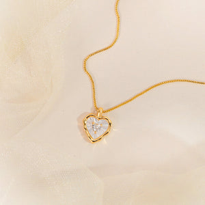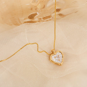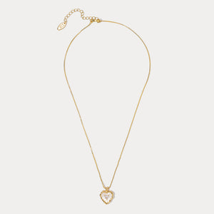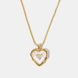 This delicate Shell Heart Necklace showcases a radiant heart-shaped pendant encased in lustrous gold. At its core lies a sparkling crystal that captures the light, symbolizing love and elegance. Suspended on a fine gold chain, this necklace is perfect for layering or wearing solo, adding a touch of sophistication to any outfit.