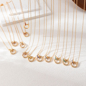 Celebrate life’s special moments with our Birthstone Circle Necklace. Designed with a sleek gold circle and adorned with a sparkling birthstone, this elegant piece represents eternity, unity, and personal meaning. Choose from 12 dazzling birthstones to honor your birth month or a loved one, creating a uniquely sentimental and stylish keepsake.