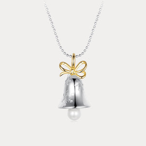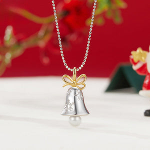Celebrate the magic of the season with the Christmas Bell Necklace. This charming piece features a polished silver bell engraved with delicate snowflakes, crowned by a graceful gold-tone bow. A luminous pearl drop completes the design, adding a soft festive glow.