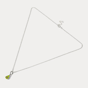 The Silver Avocado Pendant Necklace is a stylish tribute to everyone's favourite fruit. Expertly crafted from premium silver, this playful pendant features rich green enamel detailing and a shimmering stone at the centre, capturing the charm of an avocado pit. A fresh, fun piece perfect for adding personality to your everyday look.