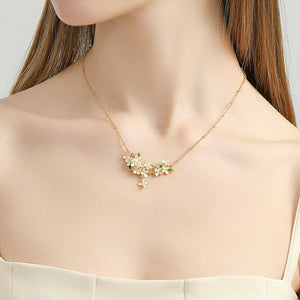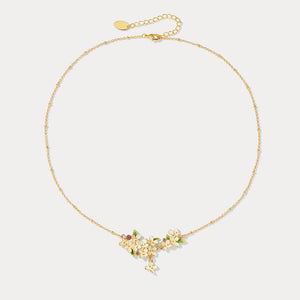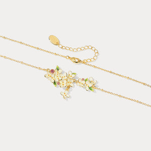 This piece is meticulously crafted with Osmanthus Fragrans petals, embodying refined craftsmanship and natural beauty. The necklace captures the essence of nature's charm, offering a unique and luxurious touch to any ensemble. Perfect for those who appreciate the sublime artistry and timeless elegance, this necklace is a true testament to the beauty of nature and craftsmanship.